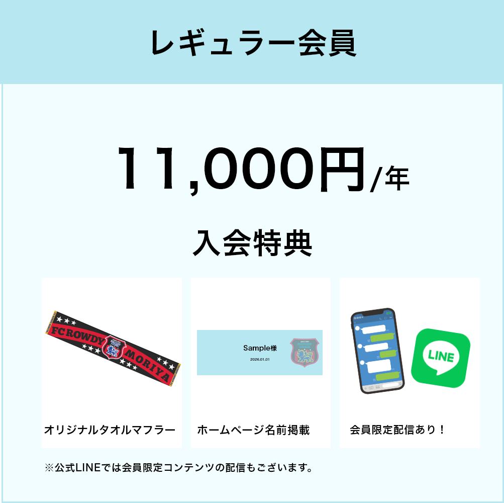 FC ROWDY MORIYA ファンクラブ2026 [レギュラー会員]の入会申込です。ファンクラブ限定のグッズを手に入れてチームを応援しよう!!